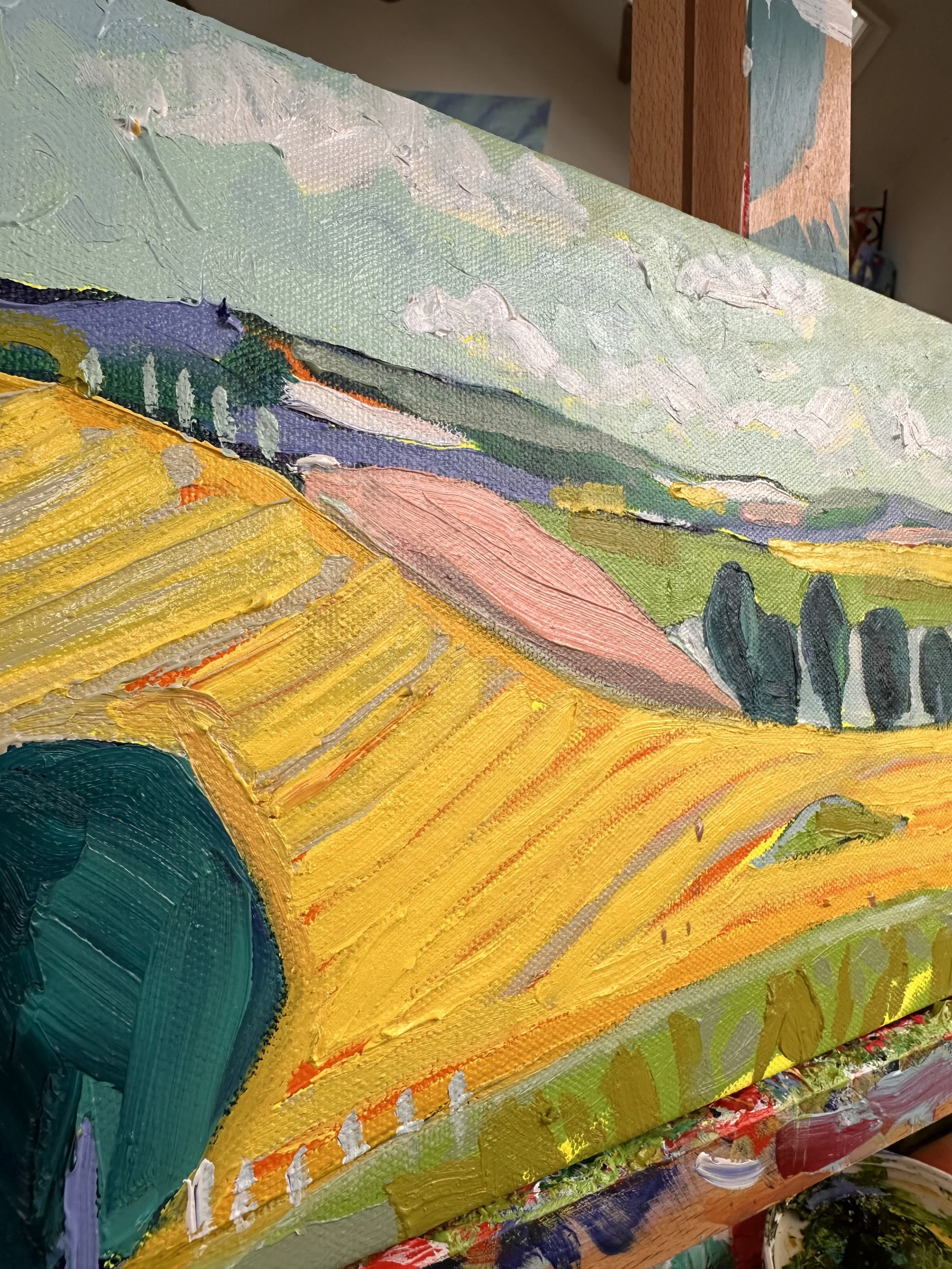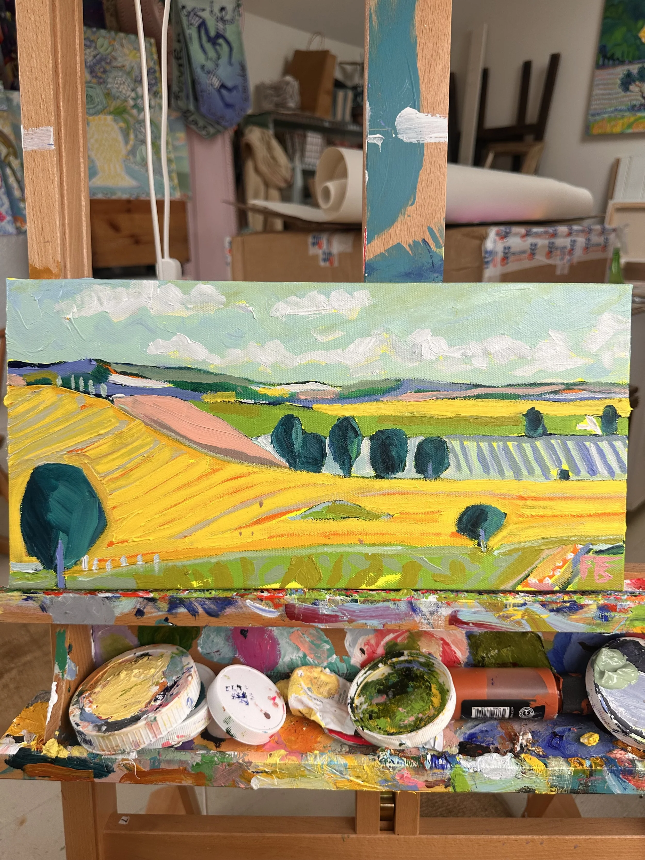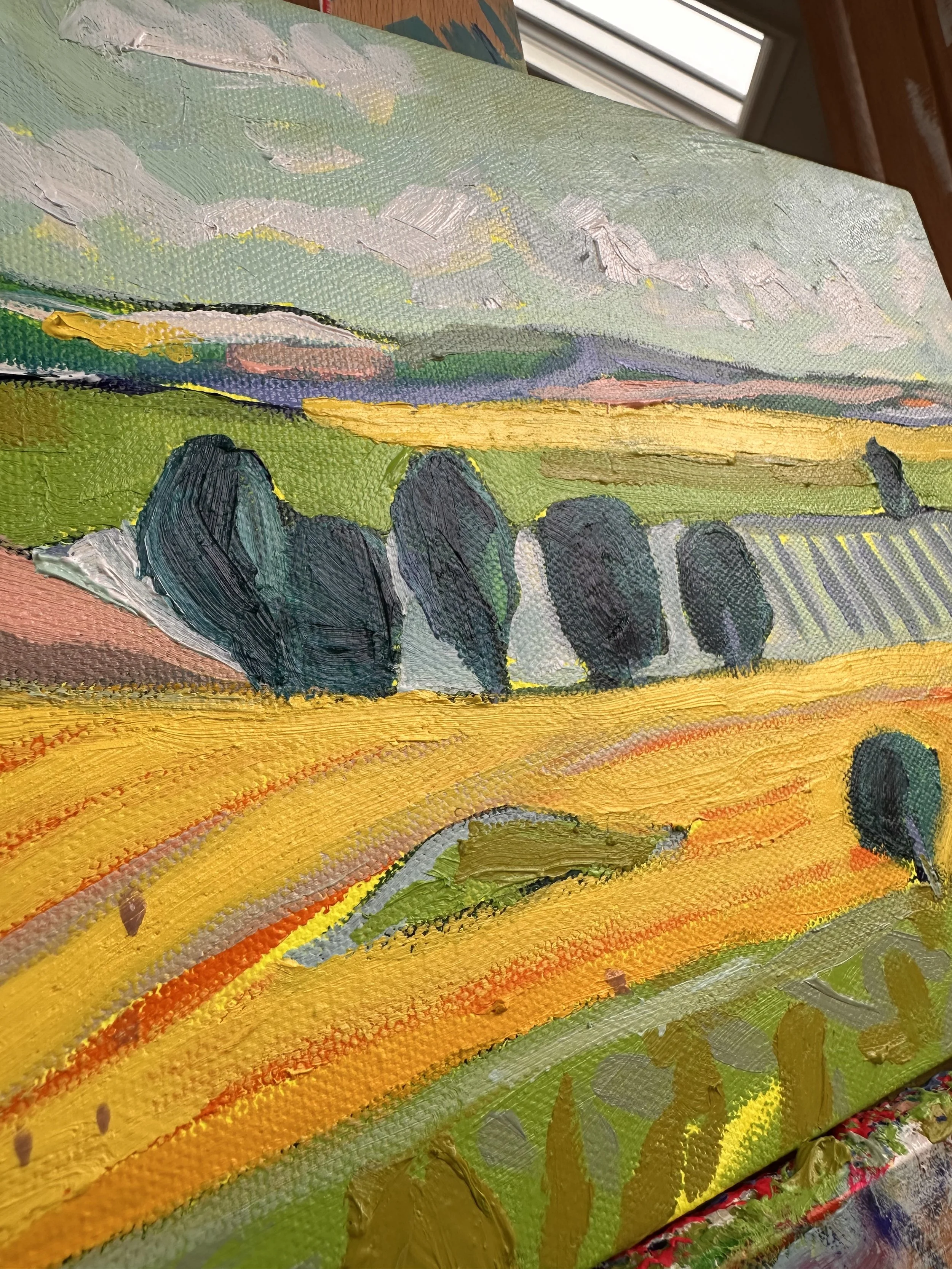 Framed in a double frame - white wooden mount and dark turquoise wooden outer frame