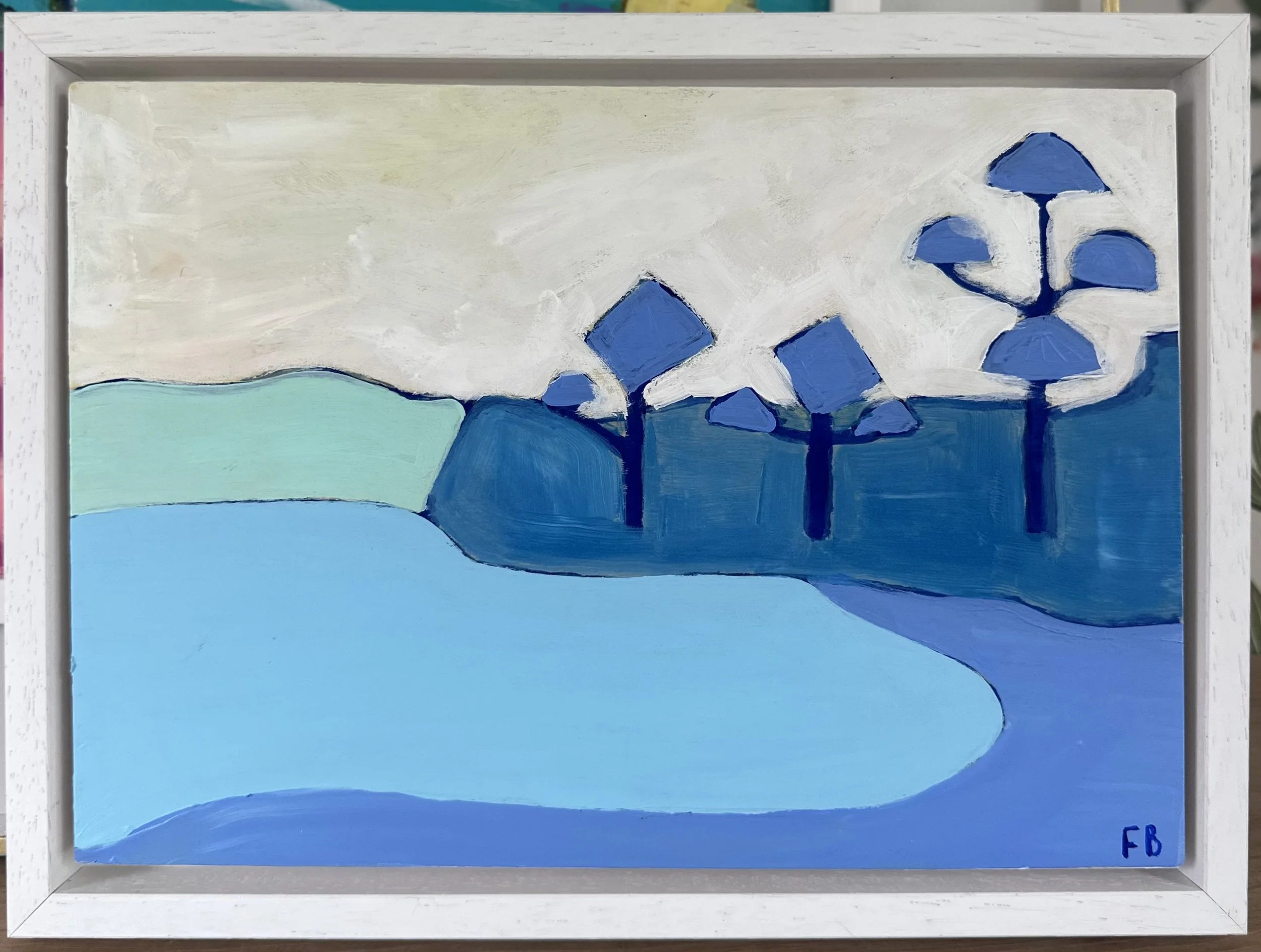Acrylic on Board in a wooden white box frame