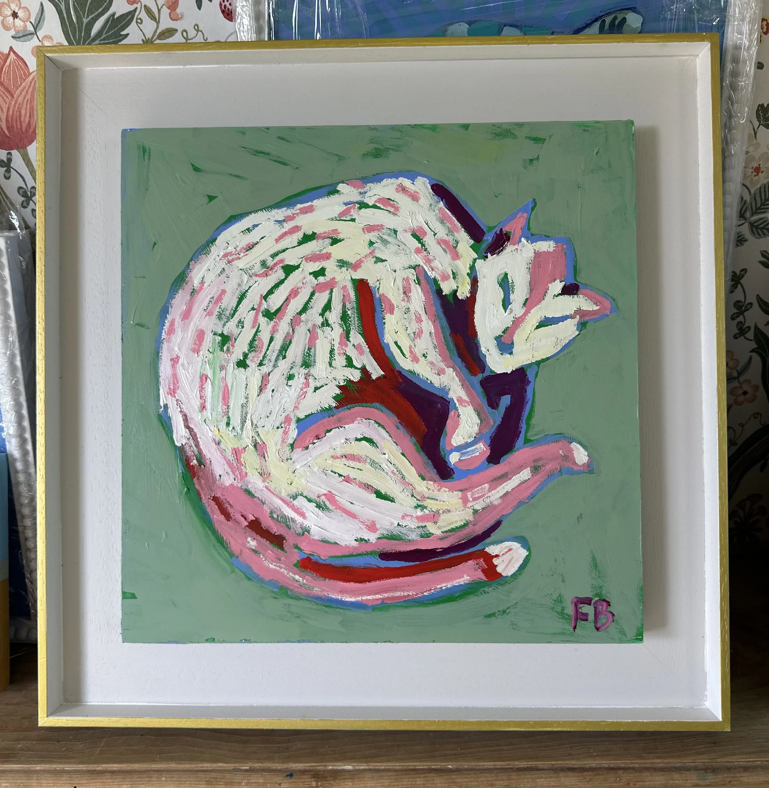 For Sale › One of Freya's Cats Image 1 of 2 Image 2 of 2 One of Freya's Cats £400.00 Acrylic on Panel Board40.5cm x 40.5cmPainted Wooden Frame Add To Cart Added! Acrylic on Panel Board40.5cm x 40.5cmPainted Wooden Frame